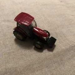 トミカの赤いトラクターのミニカー。