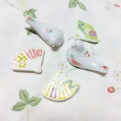 陶器製 鳥 扇子箸置...