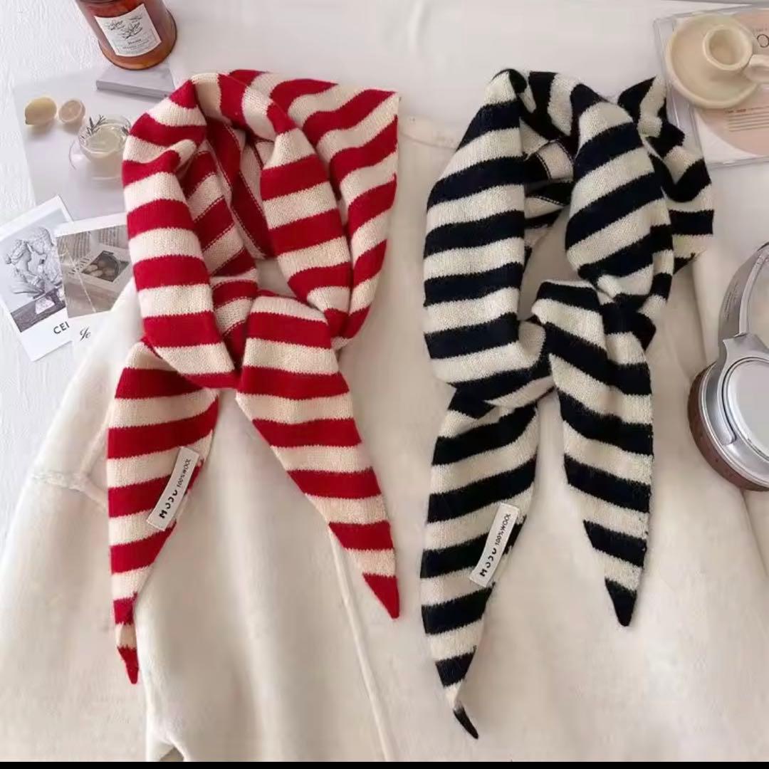 このオレンジのニットスカーフは、シンプルながらも洗練された印象を与えます。どんなコーディネートにも合わせやすく、アクセントとして活躍します。