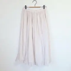 ベージュのサスペンダー付きフレアデザインのサロペット。