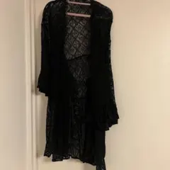 透け感のある黒色のレースカーディガン、七分袖デザインでエレガントなスタイルに最適。