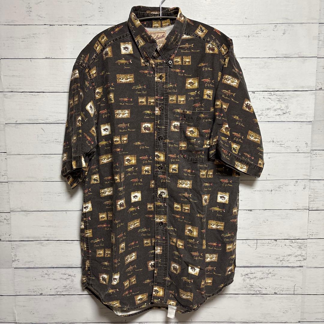 100%コットンの魚柄半袖シャツ、Woolrich USA製。