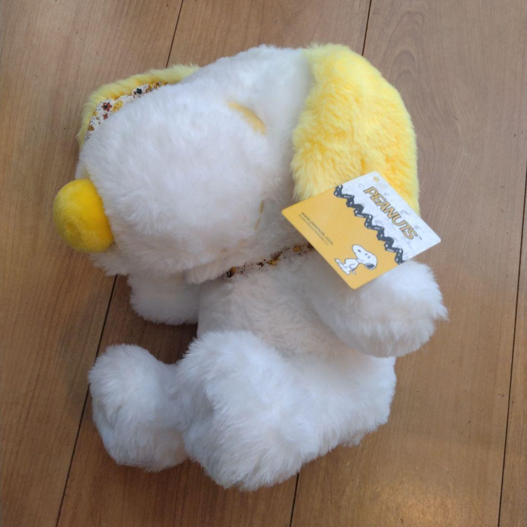 花柄が可愛らしいスヌーピーのぬいぐるみ、タグ付きです。