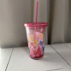 ディズニープリンセスのイラストが施されたカラフルなタンブラー。