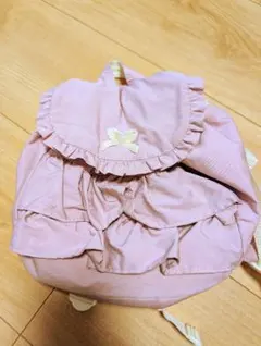 フリルとリボンモチーフが特徴的なグレーのリュック。