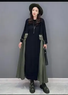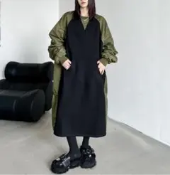 ♡袖がMA1仕様の前後バイカラー、異素材ミックスのロングワンピースです!