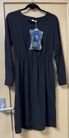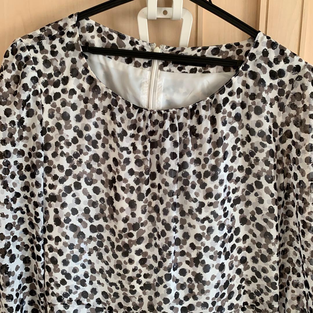 黒ドット柄長袖ひざ丈...