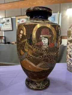 薩摩焼 武者芸者文花瓶 36cm