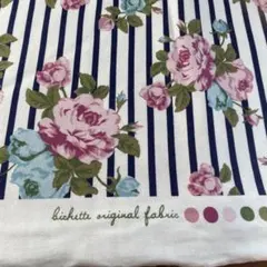 天竺ニット生地 ボーダーパネル柄 生成×青 134cm