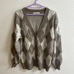 オーバーサイズのブラウンニットセーター、柔らかな素材感が特徴。