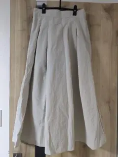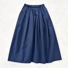 斜めに入った切り替えから広がるアシンメトリーなギャザーとフレアーが、このスカートの最大の魅力。