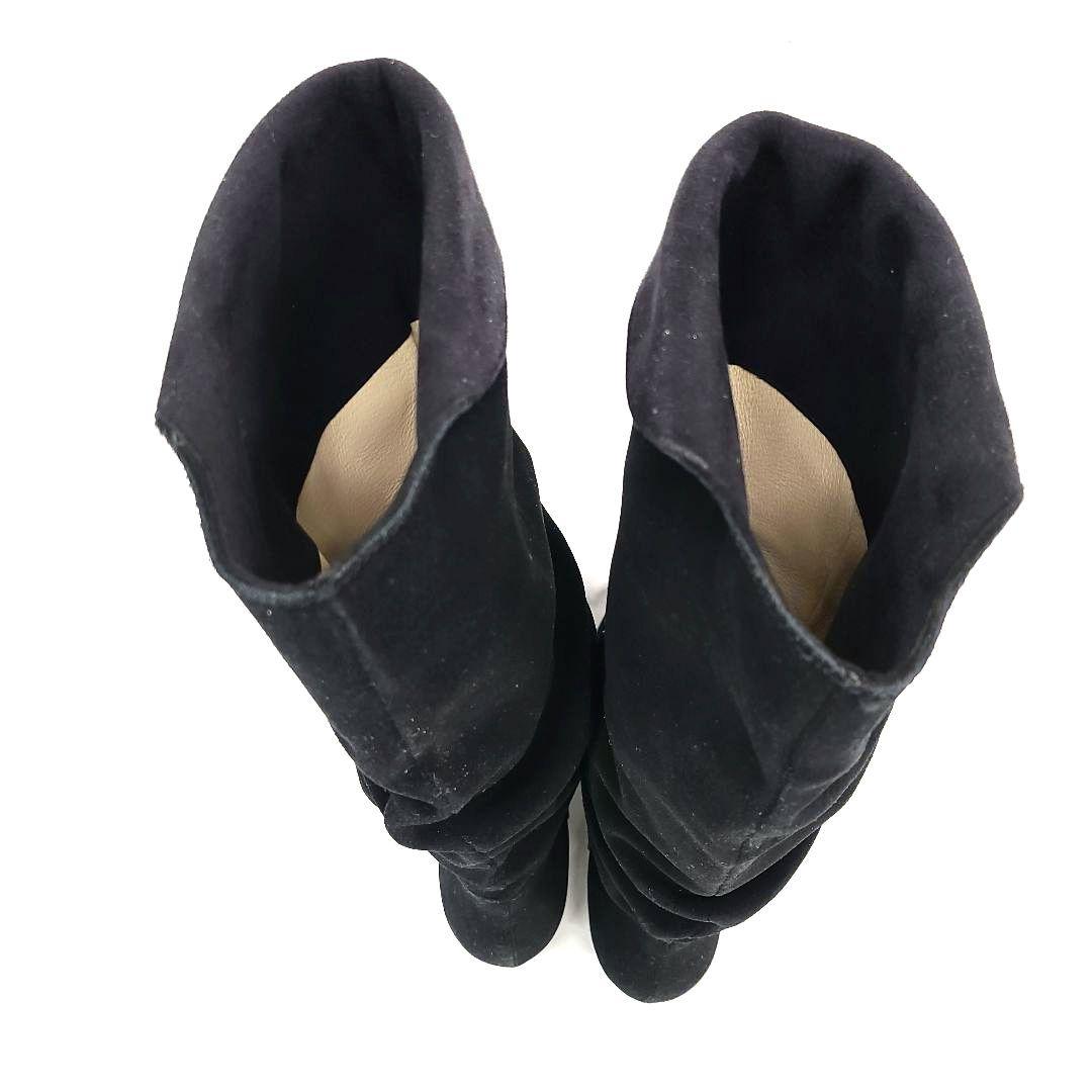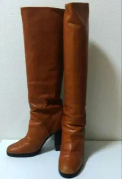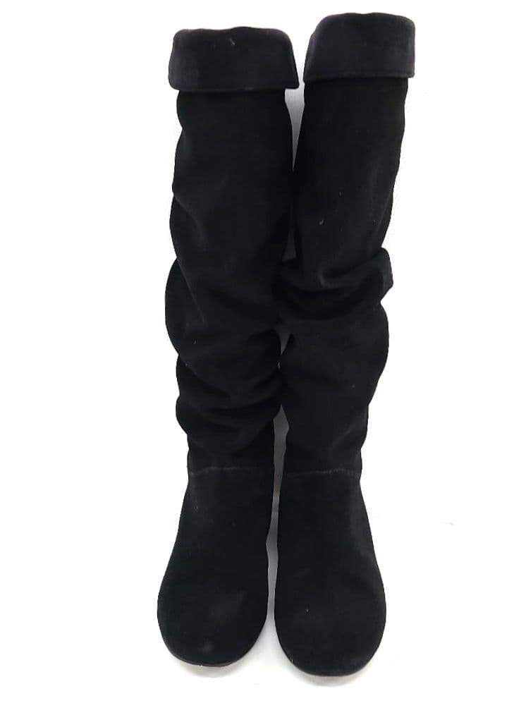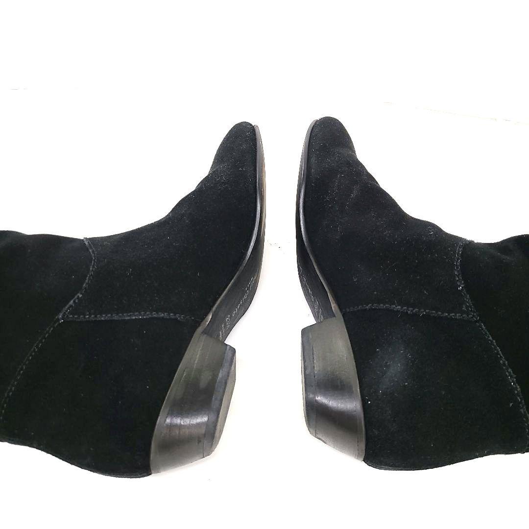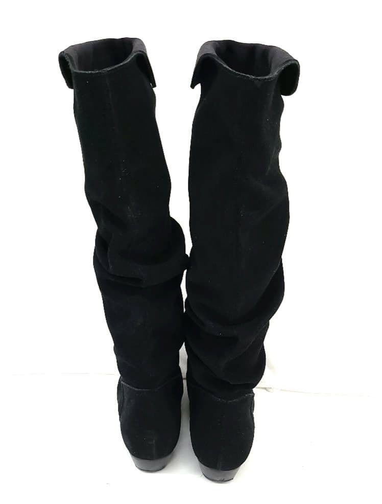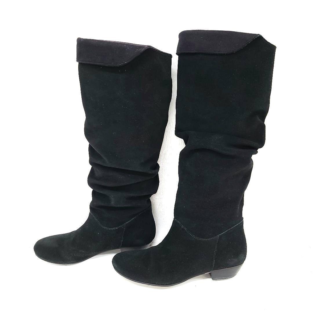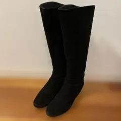 スエード素材のロングブーツ、シンプルでスタイリッシュなデザイン。