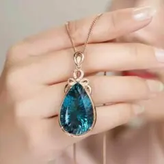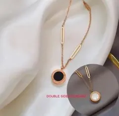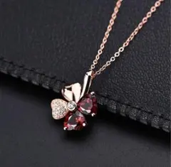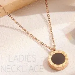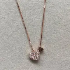 ローズゴールドのローズモチーフペンダント、ビジュー付きでカジュアルスタイルに最適。
