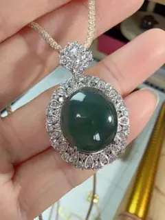 R1-0450天然本翡翠《本物保証》翡翠ペンダント 一品一図 高品質 一点物 成功 風水 金運 財運 幸運 幸福 縁起物 パワーストーン チェーンS925 約45cm 長い自由調整可能