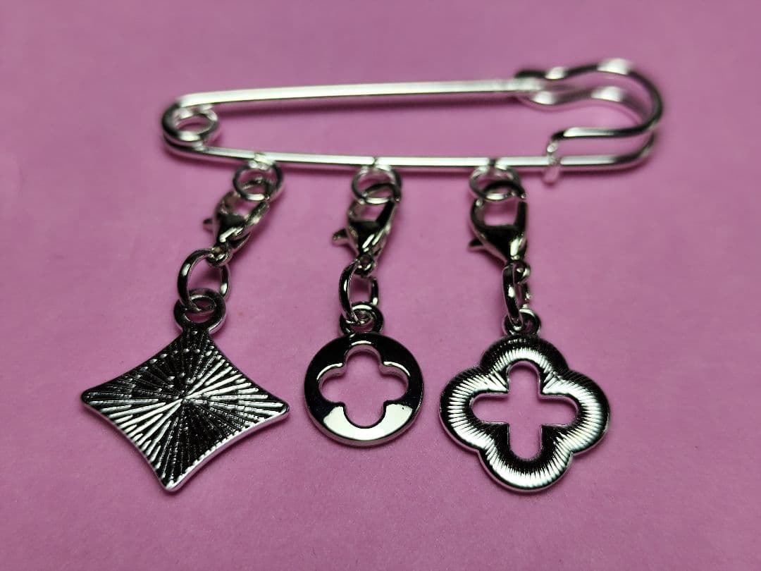 - デザイン: 安全ピン型3連ブローチ フラワー模様