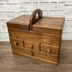 昭和レトロ ヴィンテージ ソーイングボックス シャビー 木製裁縫箱 小物入れ