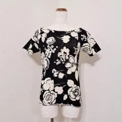 花柄 半袖ニットセーター 黒