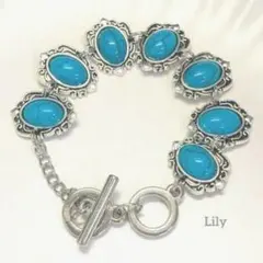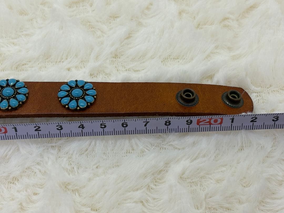 革ブレス ターコイズカラー お花のブレス 牛革 本革 レザークラフト