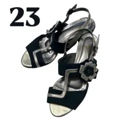 【中古】フリル付き★黒サンダル 36サイズ