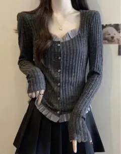 SHEIN トップス リブ編みダークグレー長袖トップス