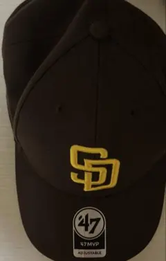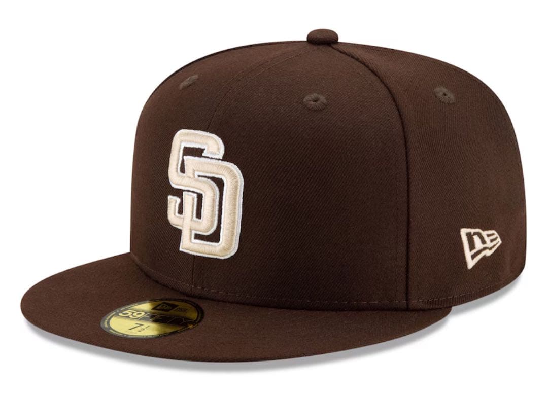 2023年ポストシーズン用のブラウンフラットビルキャップ、SDロゴ付き。