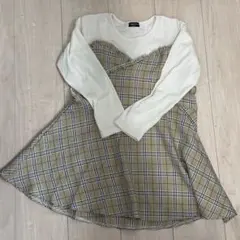 120cm ワンピース 白 チェック 女の子 かわいい おしゃれ スザンヌ
