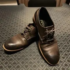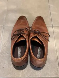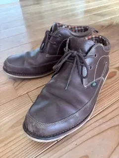 ブラウンのレザー製ハイカットレースアップシューズ。