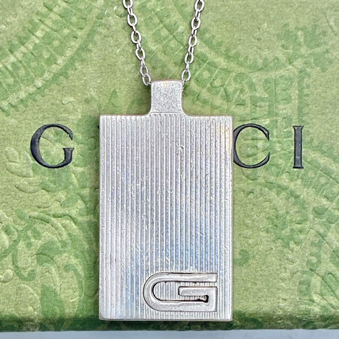 グッチを象徴する立体的な「Gロゴ」を中央に配した、存在感のあるプレートネックレスです。刻印ではなく立体的に浮かび上がるデザインが特徴で、ブランドのアイコン性をしっかりと感じられる仕上がりとなっています。