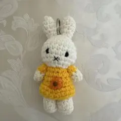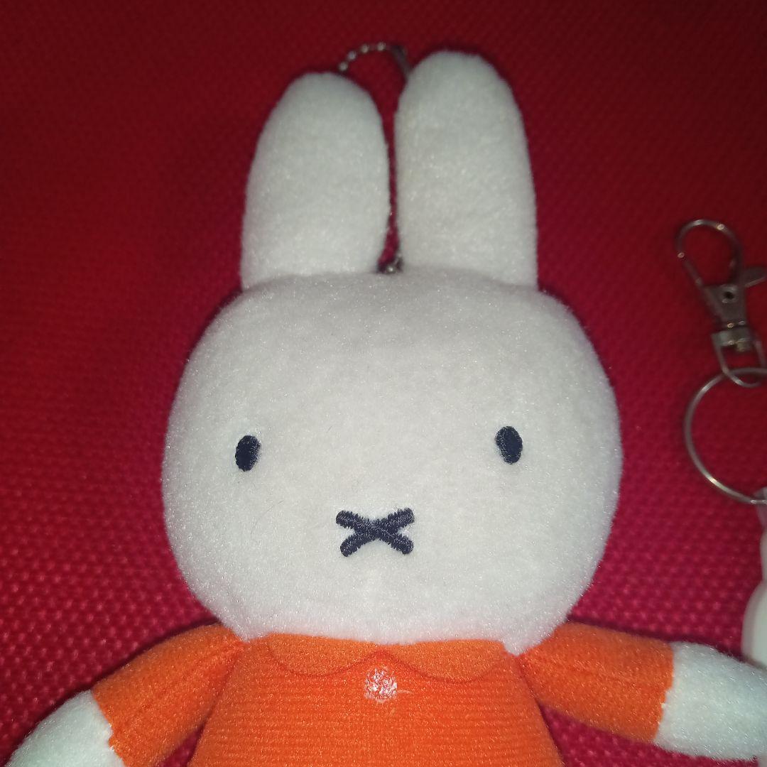 オレンジ色の洋服を着たミッフィーのマスコットキーチェーンとミッフィーの顔のラバー製チャームです。