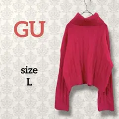 ジーユーのハイネックニットです。アクリル93%・ポリエステル7%の柔らかな素材で、首元まで暖かいハイネック仕様。淡いアイボリーの優しい色合いがコーデに馴染みます。