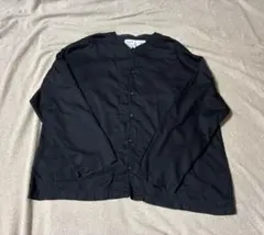 定価1.8万円・すっきりとした襟元のバンドカラーシャツ です。