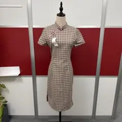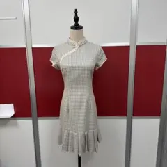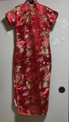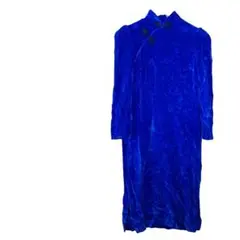 レディース ドレス 光沢 チャイナドレス L ブルー 花柄 袖なし オールシーズン 伸縮性無