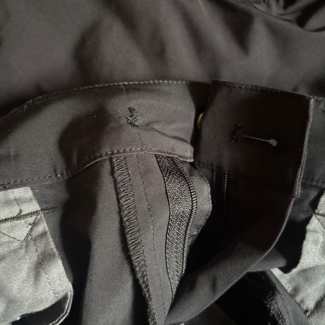 4枚目の写真、ウエスト部のボタン(金具)は付いていますが、サブで内側から止めるボタンは紛失してしまっています。