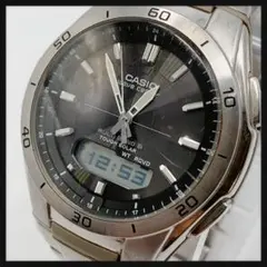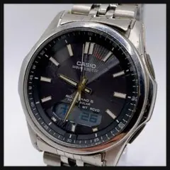アラビア数字のインデックスと、6時位置に日付などを表示するデジタル液晶を備えた実用的なデザインです