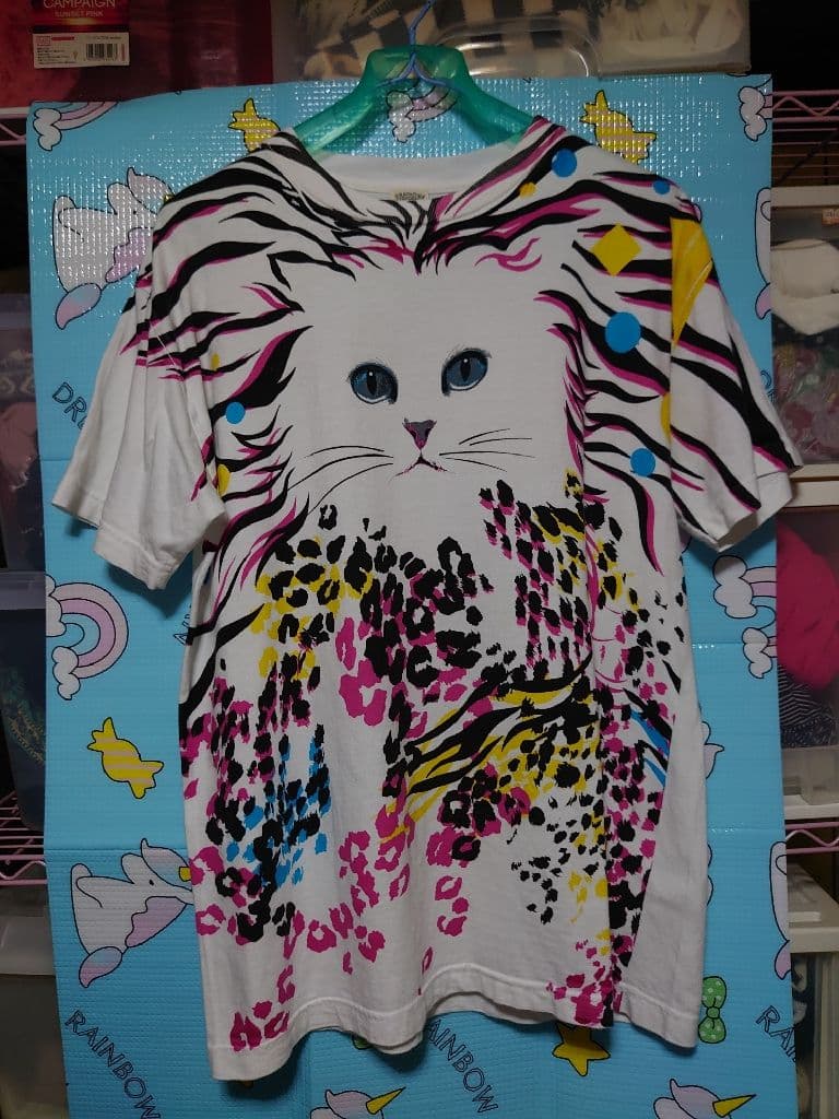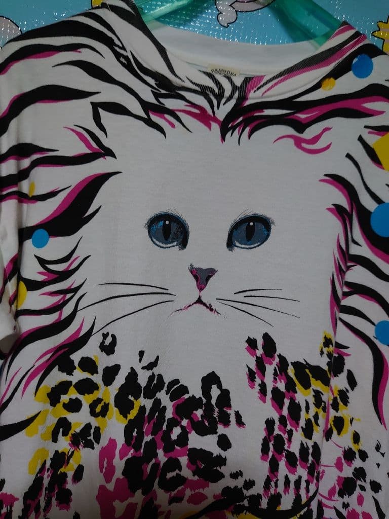 RNAヴィンテージ●ペルシャ猫プリント半袖Tシャツ●ネコ、キャット、白