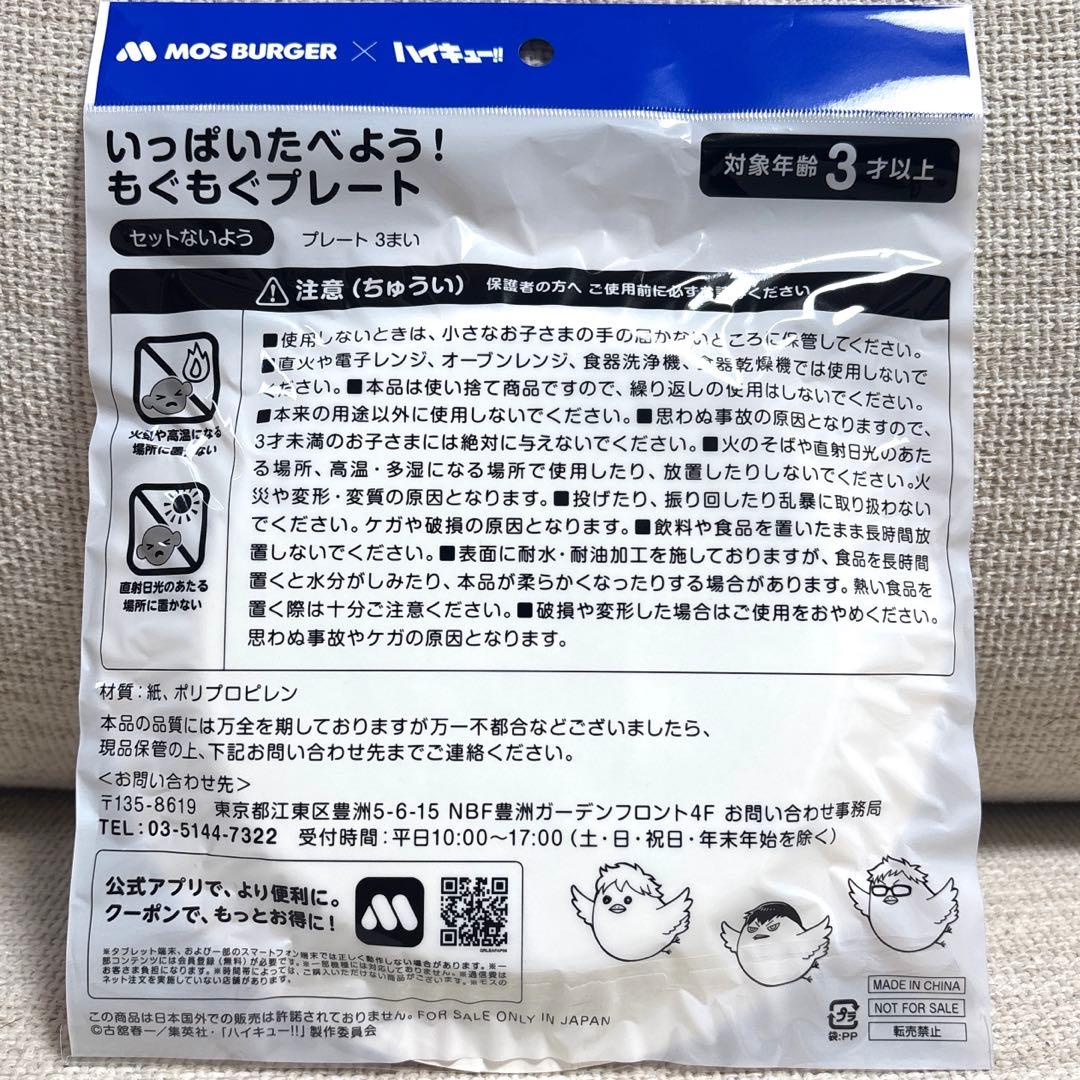ハイキュー!!デザインのMOS BURGERプレート、オレンジの縁取りが特徴。