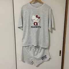 ハローキティの可愛い柄が特徴のグレーのルームウェア。