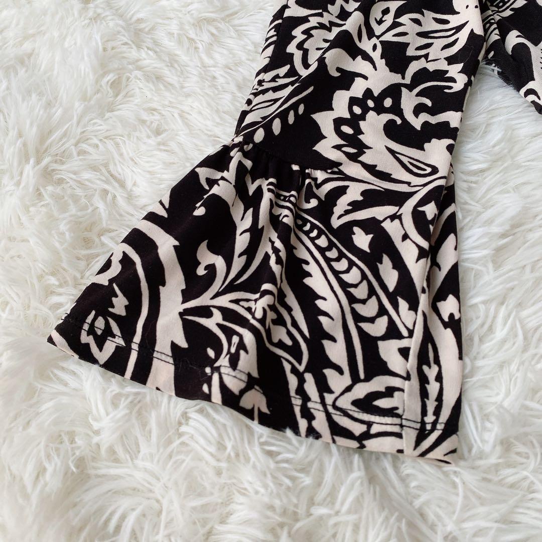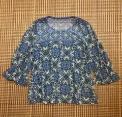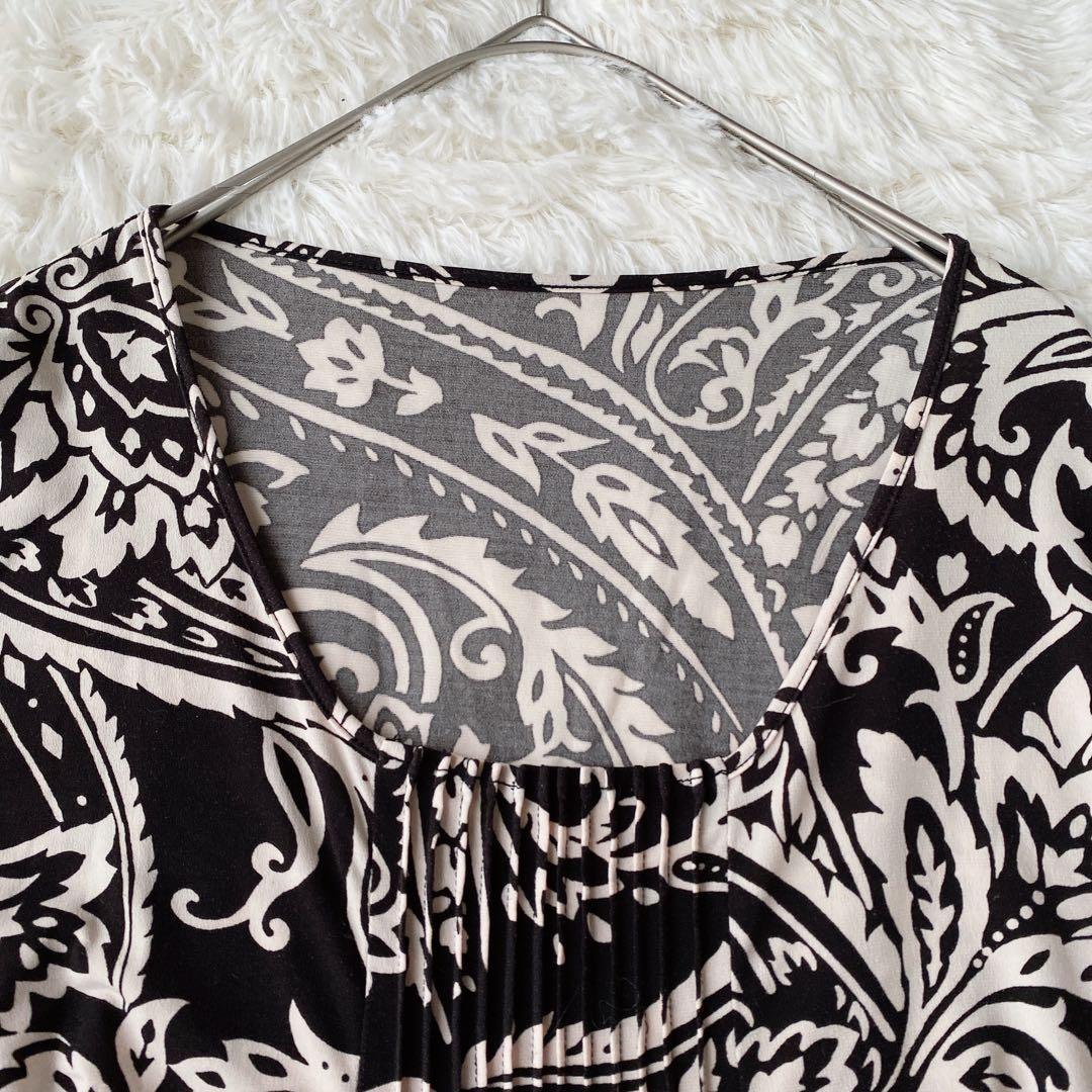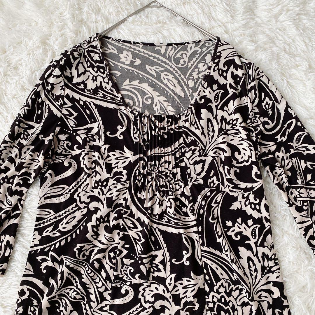 華やかな総柄(ペイズリー・ボタニカル風)が目を引くデザインで、一枚でコーディネートの主役になります。