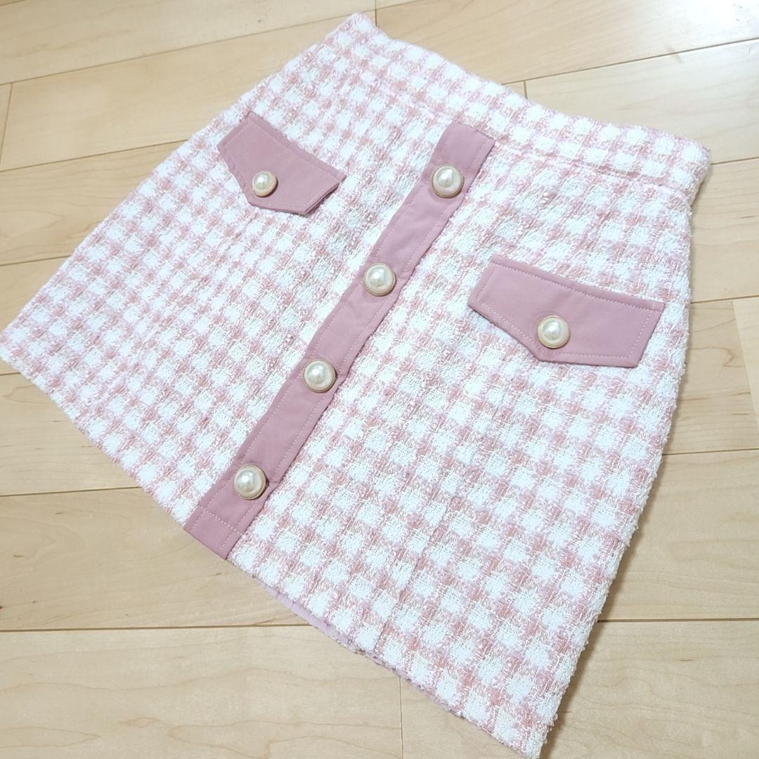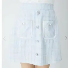 シーズンらしいツイード柄に、パールボタンが映えて、華やかさバツグンなルックスをON◎ ハイウエストで、トップスINもOUTもスタイルよくキマります。広がりを抑えた台形ラインが、気になる腰まわりをカバーし、ほっそり魅せも叶うオススメな一枚です!!