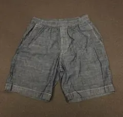 ウエストゴム仕様のネイビーショートパンツ、バックポケット付きで便利。