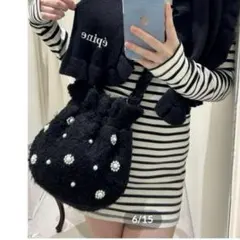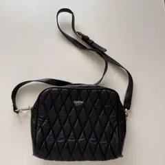 ハート型のブラックショルダーバッグで、ユニークなデザインが魅力的です。