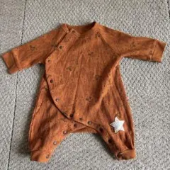 ラベンダーの花柄ロンパース、サイズ80、綿100%素材。