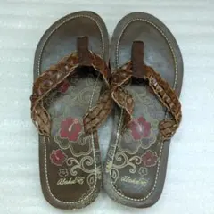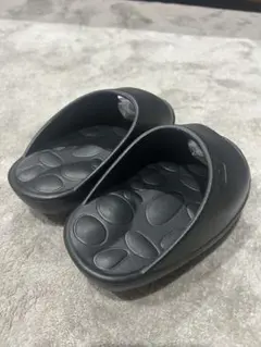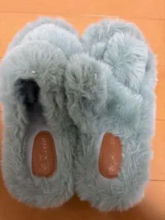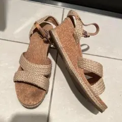 ベージュの編み物デザインのスリッパタイプサンダル。