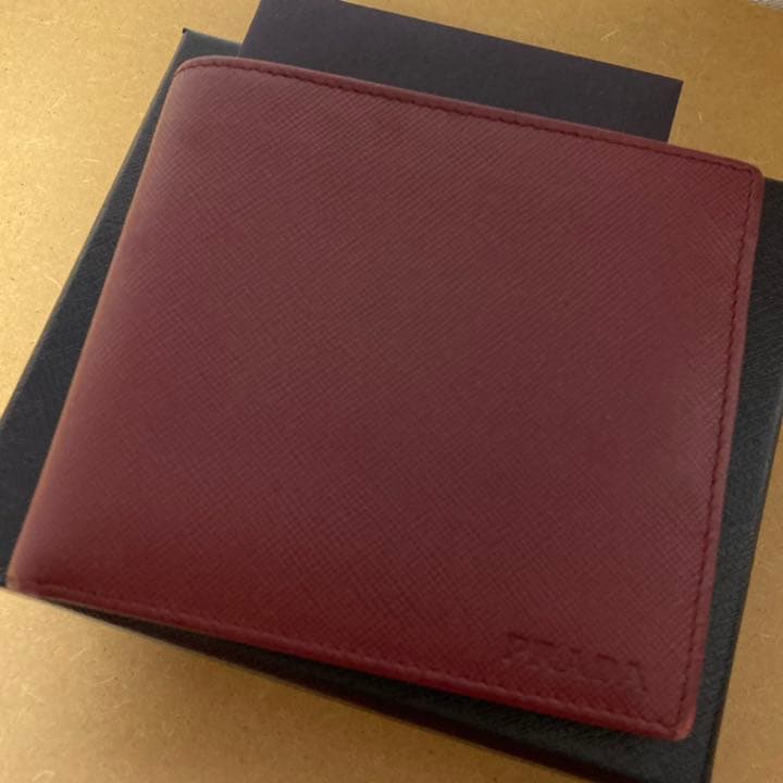 プラダの柔らかなレザーの二つ折り財布、赤。角の小さな擦れはありますが型崩れや破れ等なく比較的綺麗な状態です。箱ありです。自宅保管にご理解ください。