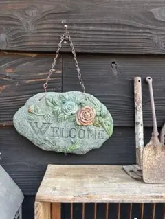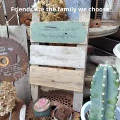 アンティーク風の木製装飾パネル、植物の水やりを促すメッセージ付き。