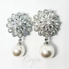 白いお花のデザインが可憐で可愛いイヤリングです♡