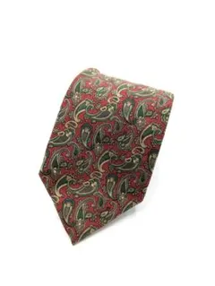 シルク製の幾何学模様ネクタイ、鮮やかな色合いが特徴。