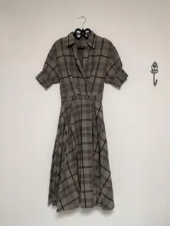 ホワイトのVネック長袖シャツワンピース、Mサイズ、シンプルでスタイリッシュなデザイン。共布ベルト付き。これからの季節に活躍しそうです。