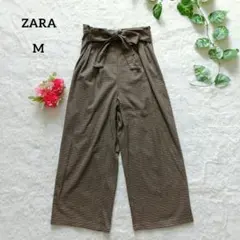 ZARA チェック柄リボン付きワイドパンツ