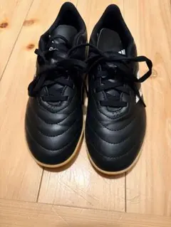 ブラックとホワイトの配色が特徴のサッカーシューズ、GOLETTO VI IN。